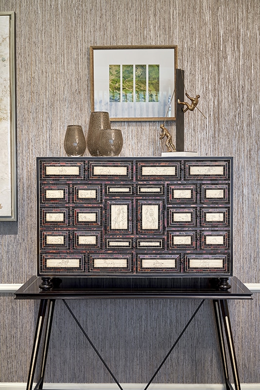 I love designing for confident men and this was a very exciting endeavor. One August day, I received a call from another design firm, who was inquiring about pricing a Baker dining room table and chairs (we’re a stocking dealer for Baker). After submitting a quote, they brought their client to review finishes. Twenty minutes later, he bought it. A day or two later, the interior design firm called and asked if I would consider taking over this client. They were very busy and were only attempting to help the assistant who originally called me because her husband worked for the clients law firm.