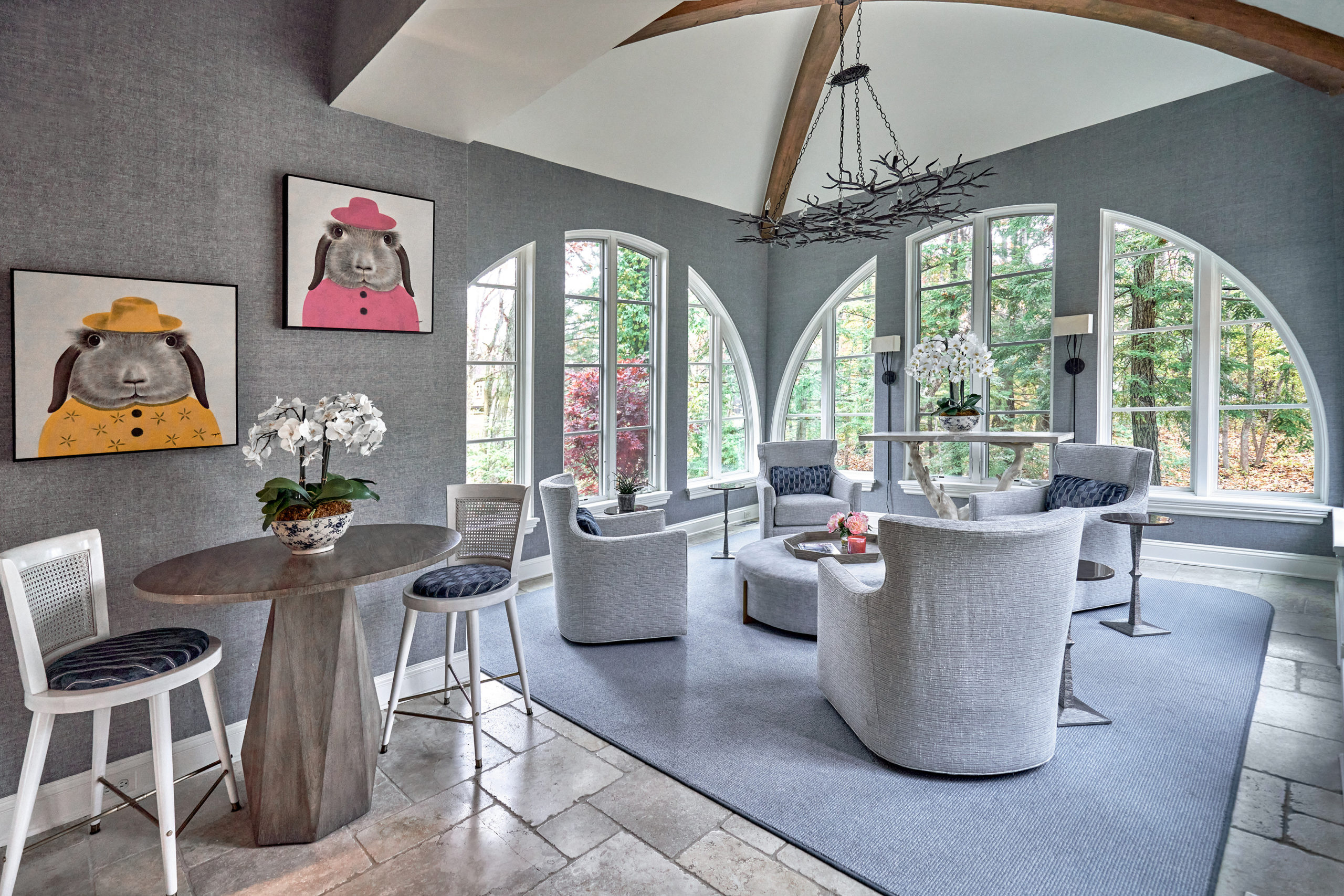 When my clients from Western Springs came to me and said, “We’re moving again, to Lake Forest!” they mentioned that they had sold their home in less than a week. The interiors we had created were a big part of that quick sale. They bought their new house partially because of its serene location; nestled in the woods a block from Lake Michigan. For them, this is house number four that Britt Carter has been privileged to be involved in the redesign; and currently, Britt Carter is in the midst of completing their other fabulous new residence in downtown Chicago.