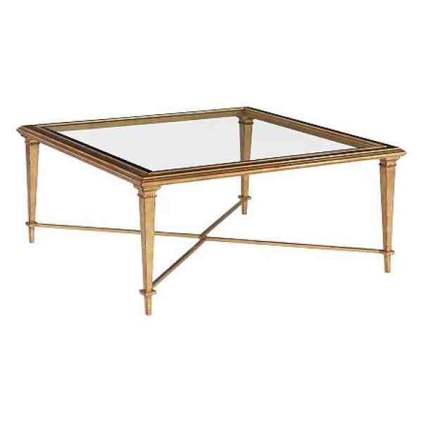The Bristol Square Coffee Table features a beveled glass top. It is available in Antique Gold Leaf (2581-10) or Antique Silver Leaf (2581-20). Beveled clear glass top standard. Antique Gold Leaf is the standard finish as shown.