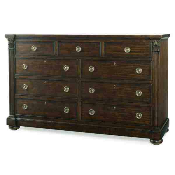Nine drawers with His jewelry tray in top right and Her jewelry tray in top left drawer.