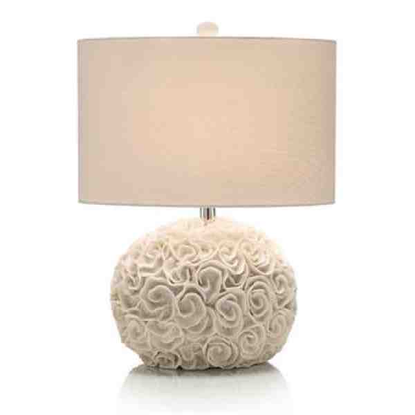 Composition in the form of a cluster of ribbons. Shade: (16″ X 10″) X (16″ X 10″) X 11″, Cream, Cotton. 3 Way, 150 Watt Max, Type A Bulb, 9″ Harp Disclaimer: This reproduction of a natural coral cluster may have small voids and indentations.
