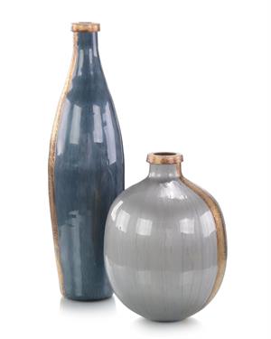 Sky-Gray Crackled Glass Tall Vase