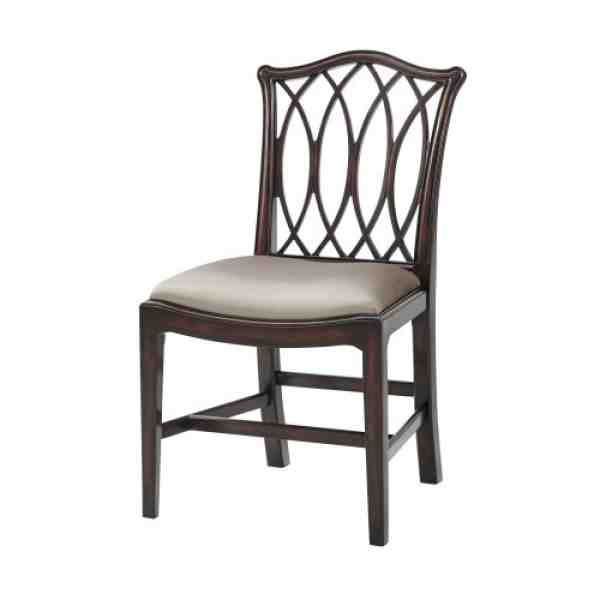 A serpentine side chair, with an interlacing trellis back, above a bowed upholstered seat, on chamfered legs. The original George III circa 1780.